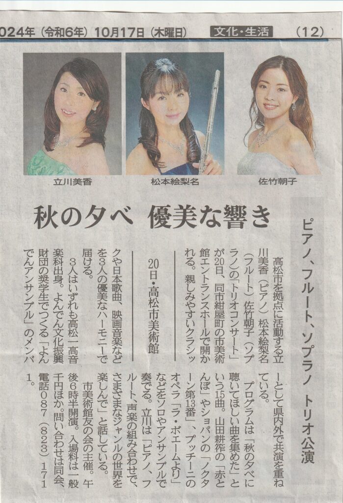 「立川美香・松本絵梨名・佐竹朝子によるトリオコンサート」